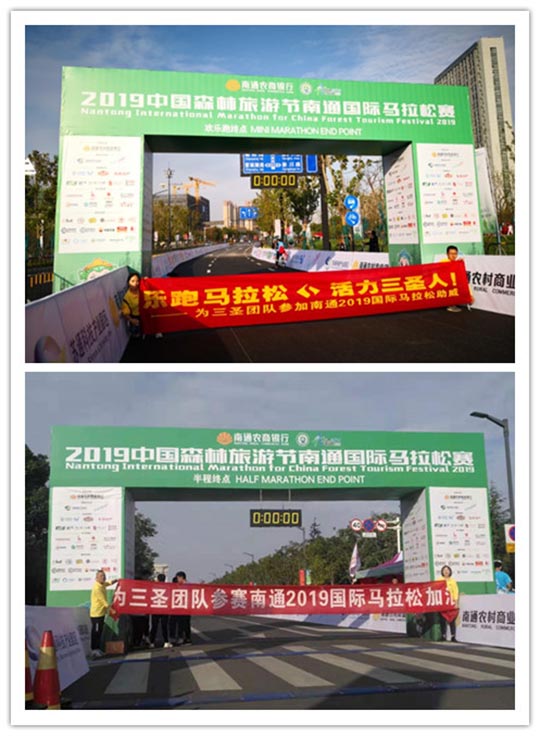 2019中國森林旅游節(jié)南通國際馬拉松在南通體育會展中心南大門正式開跑!南通瞬間成為全世界最熱鬧的城市之一!此次國際馬拉松賽是南通首次舉辦國際馬拉松賽,也是南通有史以來舉辦的規(guī)模最大、人員最多的體育賽事。上萬運(yùn)動愛好者集結(jié)于此,一場展現(xiàn)毅力與勇氣的戰(zhàn)斗開啟.南通三圣企業(yè)集團(tuán)組織參賽人員與來自全國各地和肯尼亞、德國、英國等20多個國家和地區(qū)近15000名選手同場競技,用奔跑共同迎接即將到來的2020年.激情洋溢的三圣跑團(tuán)、以及熱情奔放的三圣拉拉隊成為賽場上一道亮麗的風(fēng)景線。