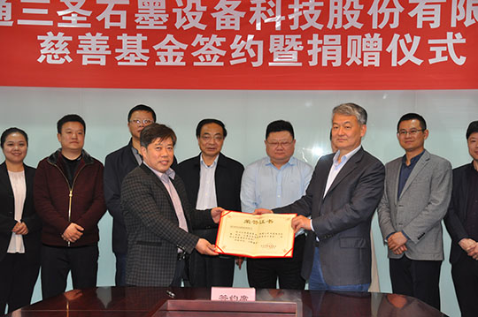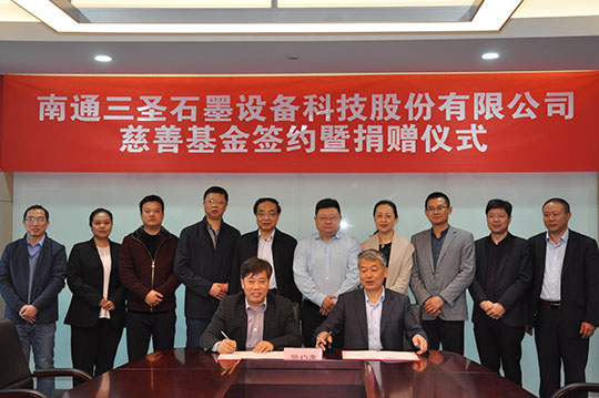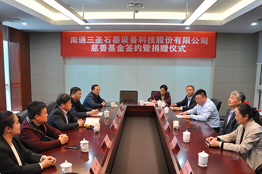 2020年4月21日,“南通三圣石墨設(shè)備科技股份有限公司慈善基金簽約暨捐贈儀式”在南通開發(fā)區(qū)能達(dá)大廈401會議室召開,該項基金將主要用于開發(fā)區(qū)安老扶幼、助學(xué)助醫(yī)、扶貧賑災(zāi)、助殘濟(jì)困、公益環(huán)保等慈善公益事業(yè),推動該區(qū)慈善事業(yè)的健康發(fā)展。