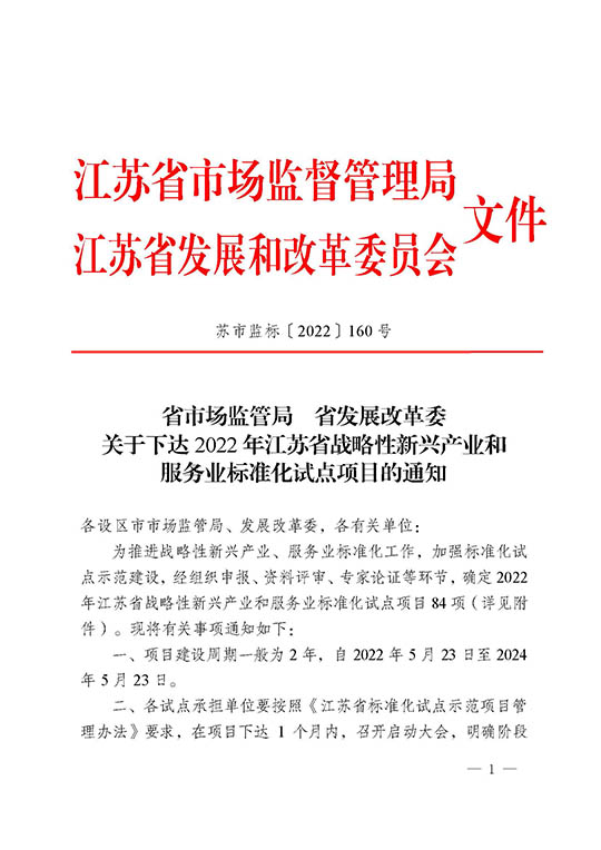 江蘇省戰(zhàn)略性新興產(chǎn)業(yè)標準化試點項目由省市場監(jiān)督管理局和省發(fā)展和改革委員會共同組織。項目對申報單位有著明確的要求:市場占有率和經(jīng)濟效益排名位于本地區(qū)同行業(yè)前列,具有良好的發(fā)展?jié)摿?,具備統(tǒng)籌技術(shù)創(chuàng)新、標準研制和產(chǎn)業(yè)化的能力等等。