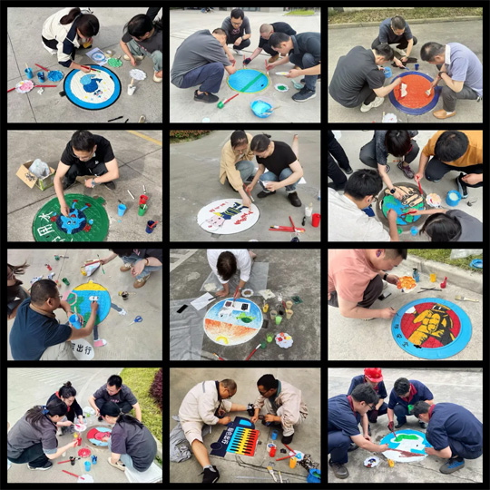 井蓋,作為園區(qū)基礎(chǔ)設(shè)施的一部分,常常被人們忽視。通過井蓋涂鴉的方式,我們將井蓋變身為了充滿創(chuàng)意和個(gè)性的藝術(shù)品。通過這場活動,提升了園區(qū)的文化氛圍,更讓職工們感受到創(chuàng)作的樂趣。