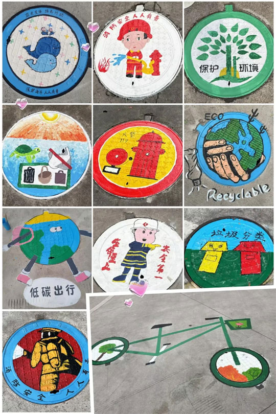 這一場別開生面的涂鴉大賽,為三圣園區(qū)添上一抹絢爛的色彩。隨處可見煥然一新的井蓋,是我們用畫筆和色彩繪制出的一道道亮麗風(fēng)景線,也是對加強(qiáng)安全環(huán)保意識及節(jié)能減碳的美好期許!