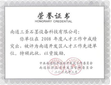我公司被南通經(jīng)濟(jì)技術(shù)開(kāi)發(fā)區(qū)評(píng)為2008年度人才工作先進(jìn)單位
