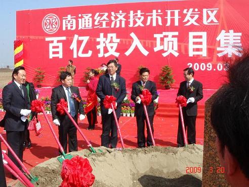 3月20日,三圣擴(kuò)建(募投)項目暨三圣工業(yè)園建設(shè)項目,參加南通經(jīng)濟(jì)技術(shù)開發(fā)區(qū)“百億投入項目集中開工儀式”。中共南通市委副書記、南通市市長丁大衛(wèi)、副市長沈振新、南通開發(fā)區(qū)黨工委書記陳德新、管委會主任葛亮等市、區(qū)主要領(lǐng)導(dǎo)出席開工儀式。 三圣董事長馮圣君與市區(qū)主要領(lǐng)導(dǎo)為開工儀式奠基。