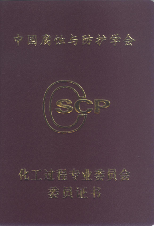 日前,公司馮圣君董事長收到證書,正式出任中國腐蝕與防護(hù)學(xué)會(huì)化工過程專業(yè)委員會(huì)第八屆委員會(huì)副主任委員。